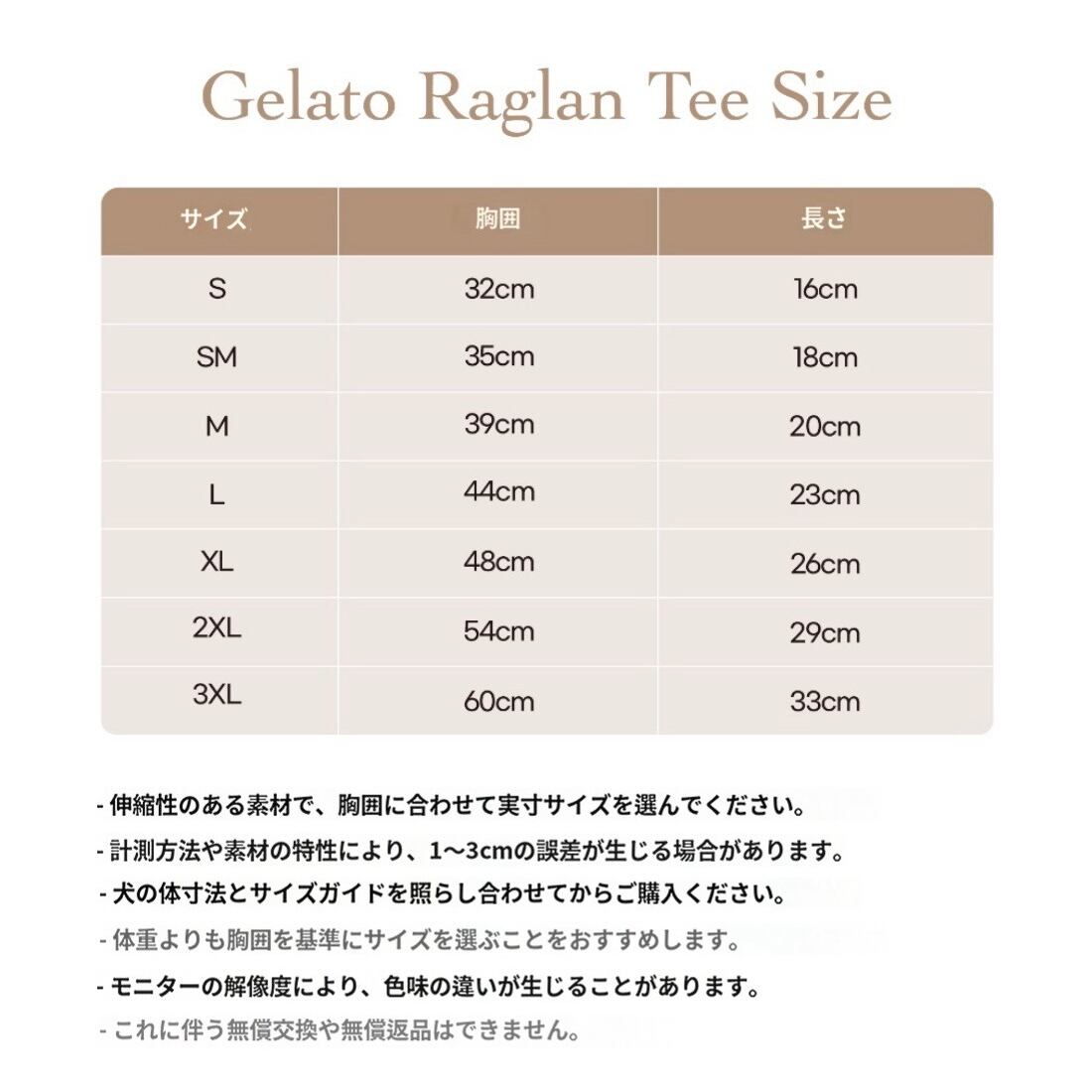 詳しくは写真のサイズチャートをご覧ください。
